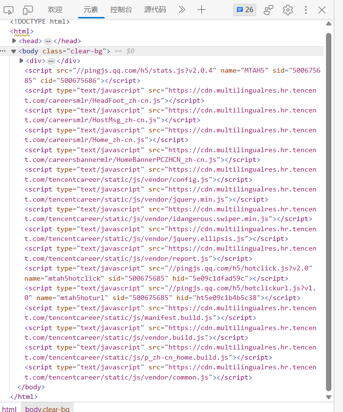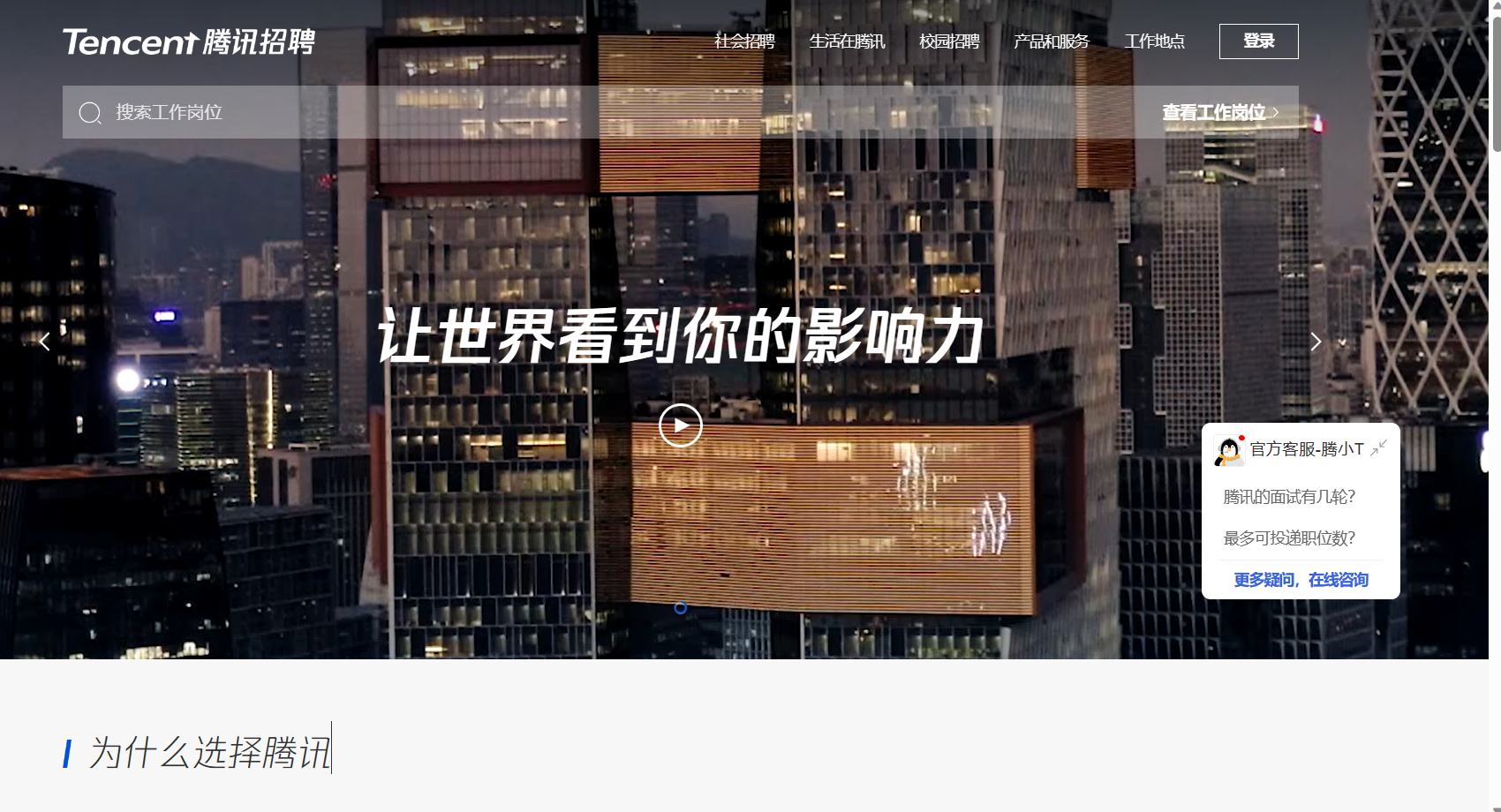 ①首先,我们需要确定要爬取的网站页面,例如腾讯招聘的页面链接为:https://careers.tencent.com/search.html。