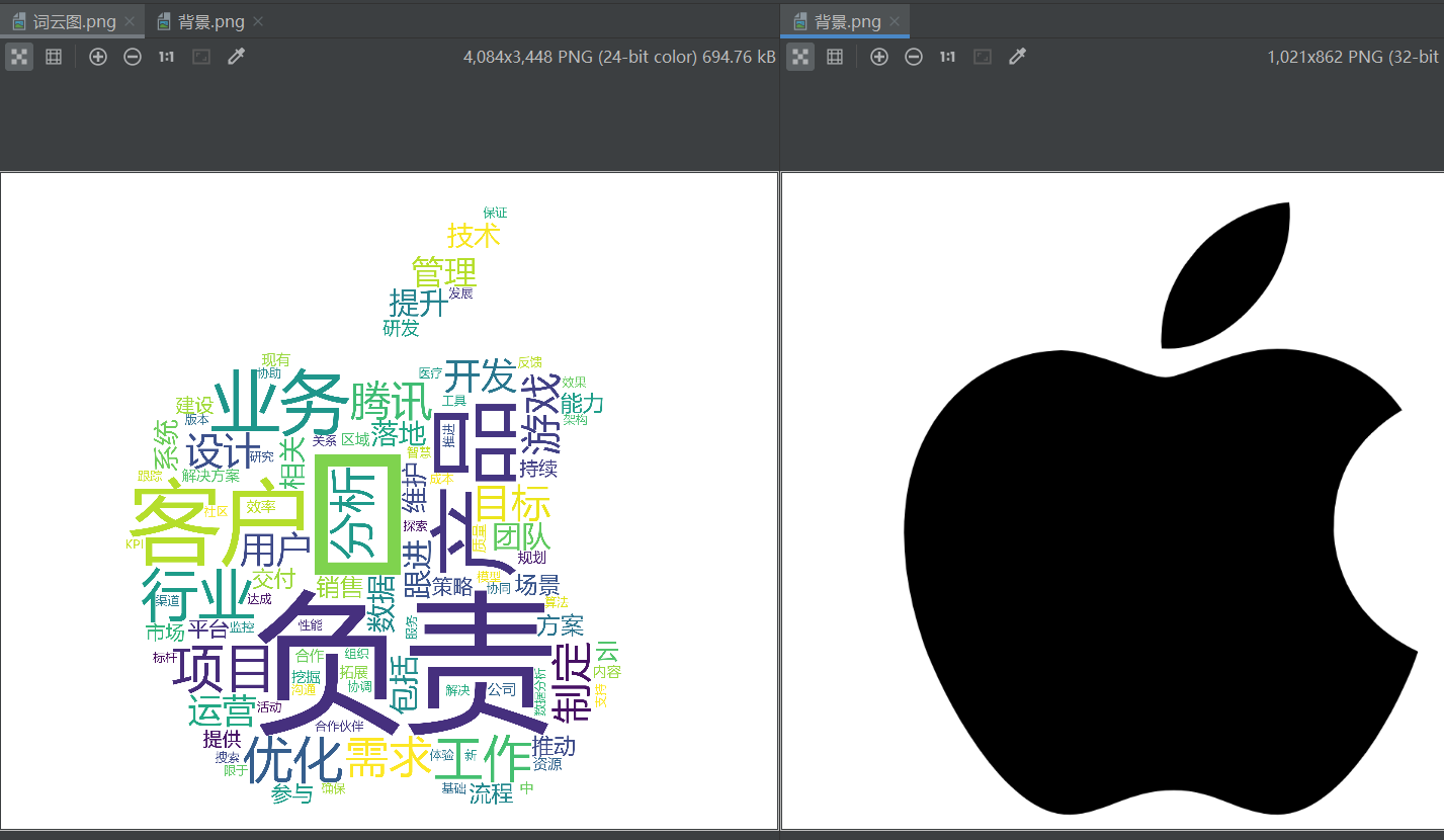 def show_image(self): ''' 词云图 ''' # 进行jieba分词, 数据存到 source_list中 source_list = list(jieba.cut(self.big_str)) # 去除空格 source_list = [i for i in source_list if i != ' '] # 读取停用词文本 stop_words = [] with open('stopw.txt', 'r', encoding='utf-8') as f: for line in f: stop_words.append(line.strip().lower()) # 去除停用词 result_words = [] for word in source_list: if word != '\n': if word.lower() not in stop_words: if word not in stop_words: result_words.append(word) # 统计词频 word_count = Counter(result_words) top_words = word_count.most_common(20) # print('=============前20的词================') # for k, v in top_words: # print(k, v) # 绘制词云图 # A、添加背景图片 mask_pic = np.array(Image.open('背景.png')) # B、设置词云图样式 wd = WordCloud( font_path="msyh.ttc", # msyh.ttc background_color="white", scale=4, mask=mask_pic, max_words=100, ) # 添加数据 wd.generate_from_frequencies(dict(word_count)) wd.to_file('词云图.png') print('词云图创建完成')