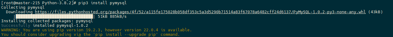 [root@master-215 Python-3.8.2]# python3 -V Python 3.8.2 [root@master-215 Python-3.8.2]# pip3 -V pip 19.2.3 from /usr/local/python3/lib/python3.8/site-packages/pip (python 3.8)