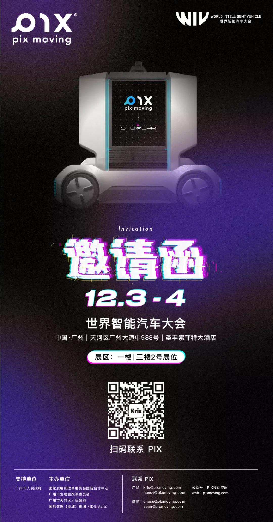 12月3-4日,PIX像素智能即将参加由广州市人民政府支持,国家发展和改革委员会国际合作中心、广州市发展和改革委员会、广州市天河区人民政府共同主办的“2020世界智能汽车大会”,届时,PIX像素智能将与特斯拉、百度车联网等企业同台展出。