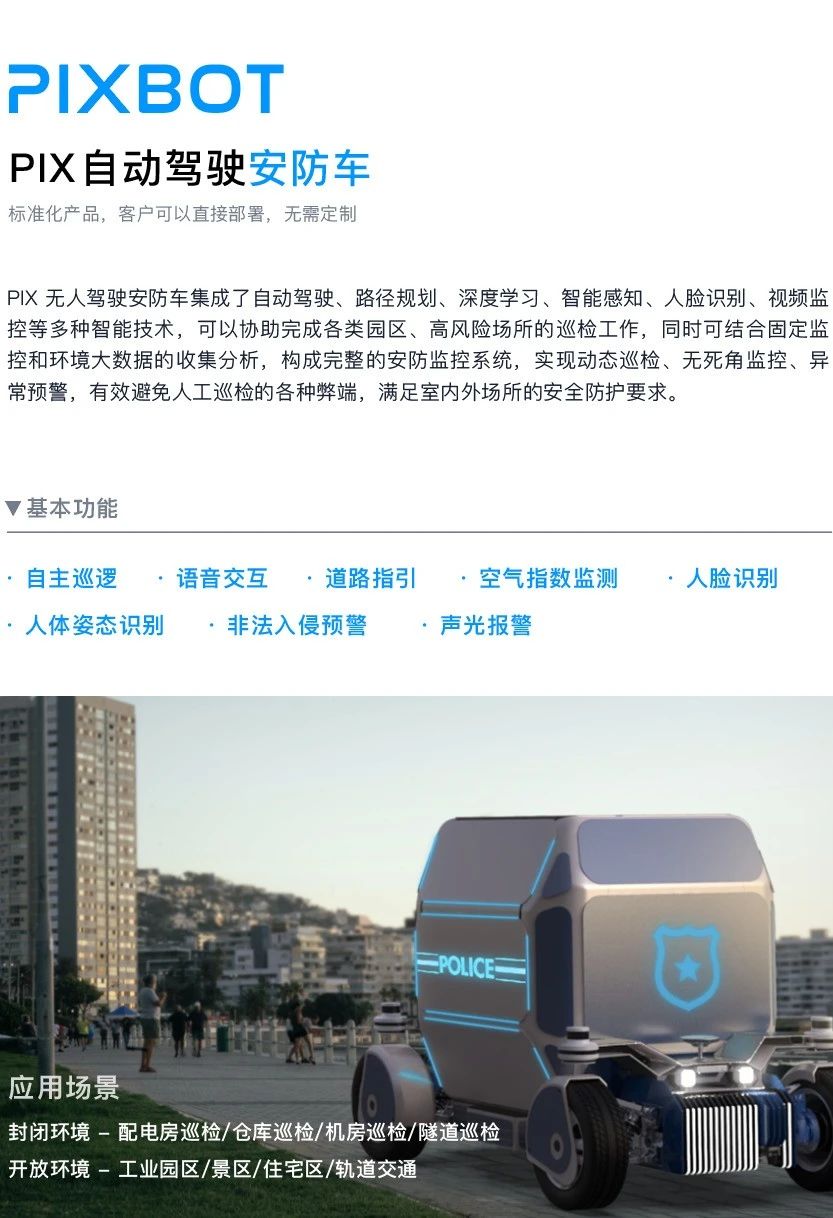 除了 PIX 智能饮料零售车以外,目前PIX 还开发了自动驾驶配送车、自动驾驶安防车等。