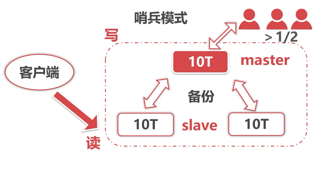 但是这里有个问题,一旦主节点故障那么就没法写入数据了;所以redis提供了哨兵的机制,如果哨兵是单个机器监控主节点,一旦主机点故障了,