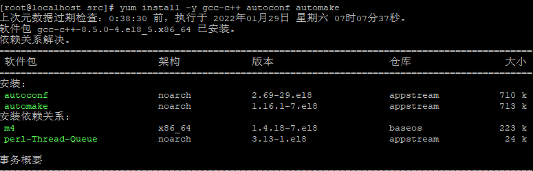 第三步:安装依赖 命令 yum install -y gcc-c++ autoconf automake
