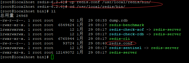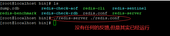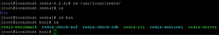 进入到创建的redis目录下 cd /usr/local/redis/ 发现有个bin目录 查看 bin目录 命令 ls