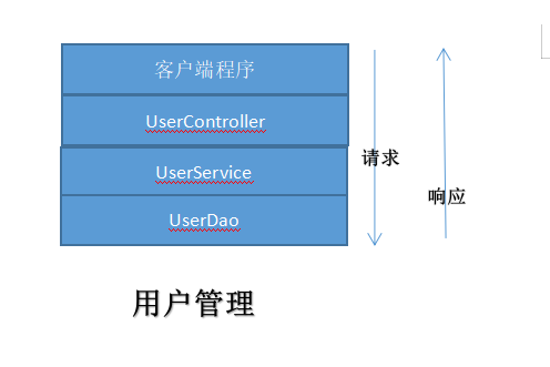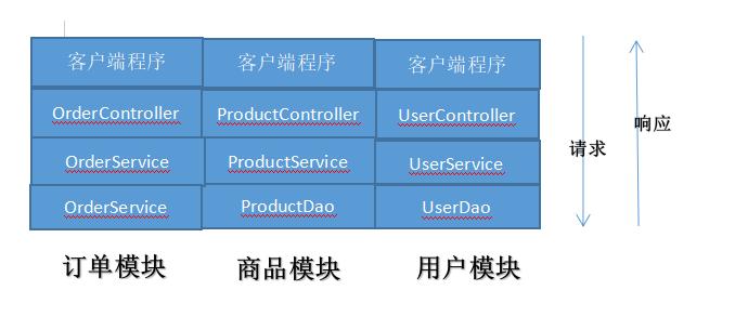 在传统的开发中,我们要一个功能模块被请求一般需要经过:客户端程序->controller层 -> service层(业务代码) -> dao层(数据库操作),如下图: