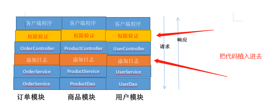 接下来我们需要给每一模块增加权限验证和添加日志,那这个时候AOP怎么做呢?