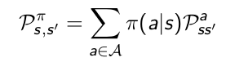 执行策略 后,状态从s转移至 s' 的概率: