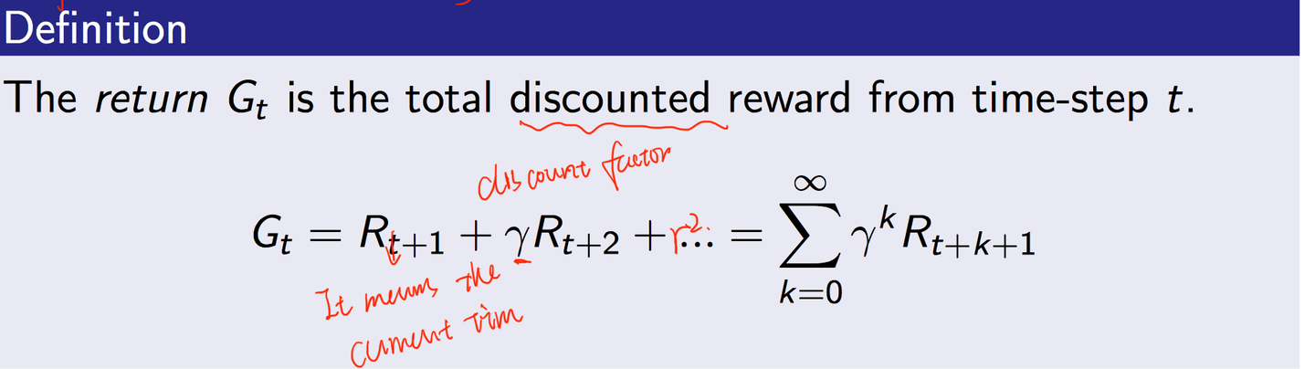 return :从 t 时刻开始往后所有的奖励的有衰减的和: