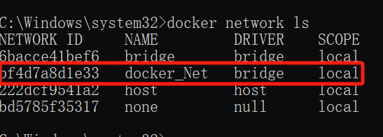 #其中,-d指定了docker的网络类型为bridge类型,并自定义docker网络的名称为docker_Net