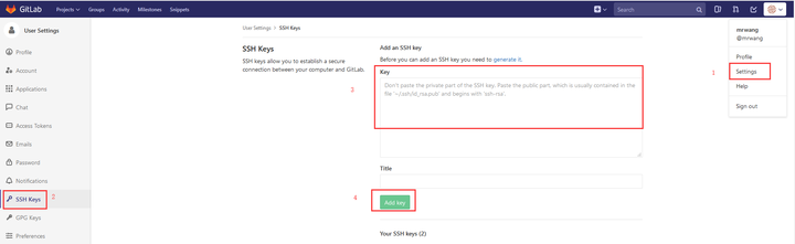 3. 然后在gitlab上绑定自己刚刚生成的公钥