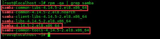 (1)[root@localhost ~]# rpm -qa | grep samba 默认已经安装的软件包