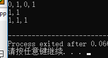 #include <stdio.h> int main() { int a=5,b=8,c=8; printf("%d,%d,%d,%d\n",a==b&&a==c,a!=b&&a!=c,a>=b&&a>=c,a<=b&&a<=c); printf("%d,%d\n",a<=b||a>=c,a==b||b==c); printf("%d,%d,%d\n",!(a==b),!(a>=b),!(a>=c),!(a<=b)); return 0; }