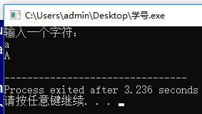 #include<stdio.h> int main(void) { char ch; printf("输入一个字符:\n"); scanf("%c",&ch); if(ch>='a'&&ch<='z') ch=ch-32; printf("%c\n",ch); return 0; }
