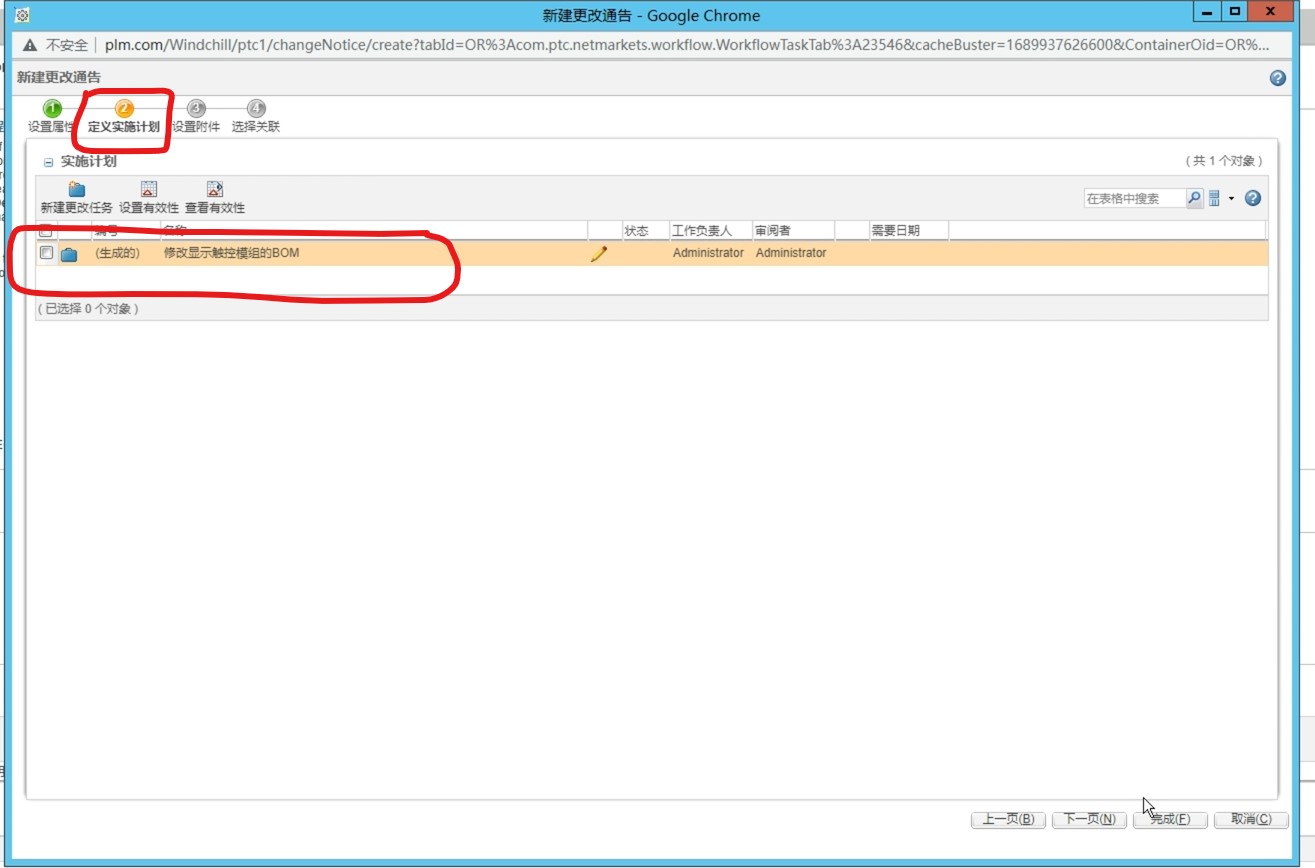 点击新建更改通告,我们输入更改通道的名称,在这里,可以对变更通告进行进一步的说明,然后点击下一步,定义实时计划,定时计划,系统会默认创建一个实际实时任务,我们可以点击编辑更改任务,来修改它的默认的名称,比如说我这里我要修改,显示触控,to the bomb然后呢选择声音响的对象,这里我就还是粘贴,刚才那个显示触控的部件,然后点击完成,再点击下一页,可以上传一个本地的附件,通常更改通告会有一个更改通知单,这里为上上传本地这个更改通知单,作为它的附件,然后点击下一页,选择关联这个地方,系统会自动把刚才的更改请求,添加到关联的进程,我们点击完成,选择立即提交,这时候就自动创建了一个更改通告,并完成了流程的一个提交。