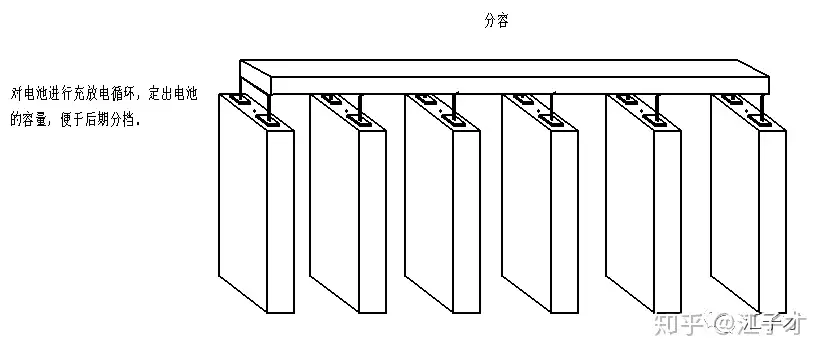 电池清洗后就到了分容,分容就是通过对电池的满充满放,确定电池的容量,过了分容,这个电池的容量就确定了,作为后期分档筛选的依据。注意与化成的区别,化成一般只充电不放电,分容充电又放电。