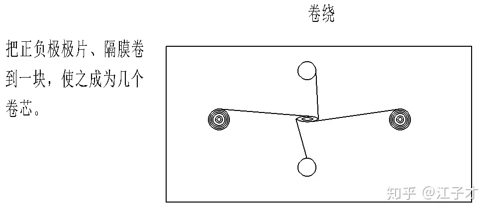 经过激光切后,极片基本成型了,运送到卷绕。卷绕,即是把正极、隔膜、负极、隔膜卷到一块。通过隔膜分开正负极,这样一个极芯就形成了。