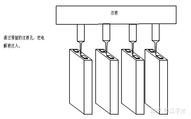 进入到注液环节,也就是通过设备对事先预留在盖板上的注液孔,把电解液注入的一个过程。