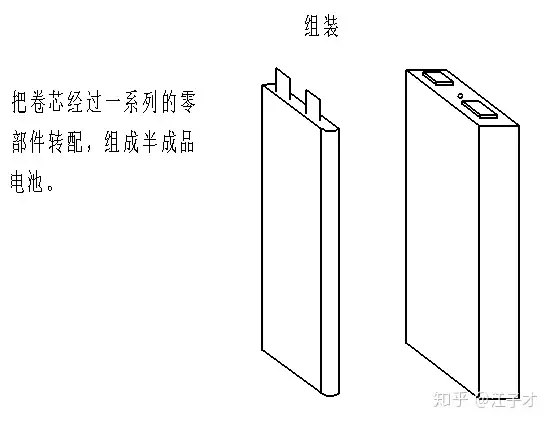 经过卷绕,极芯成型后,通过一系列零部件的装配,组装成半成品电池的过程我们称为组装。主要包含了包胶、极耳预焊、盖板焊接、折极耳、入壳、激光焊接。经过这一个流程,电池除了注液孔,其他均与外界隔绝。