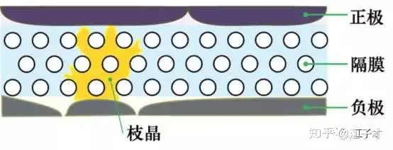 6、电流过大,负极不能接纳更多的锂离子,形成枝晶,刺穿隔膜短路;
