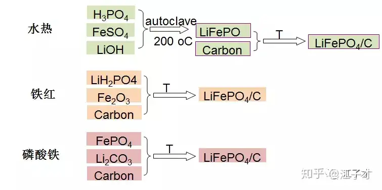 常见的有固相合成法、液相合成法以及放电等离子烧结技术,喷雾热分解技术和脉冲激光沉积。常用路线有水热、铁红和磷酸铁,以下介绍以磷酸铁路线为例。