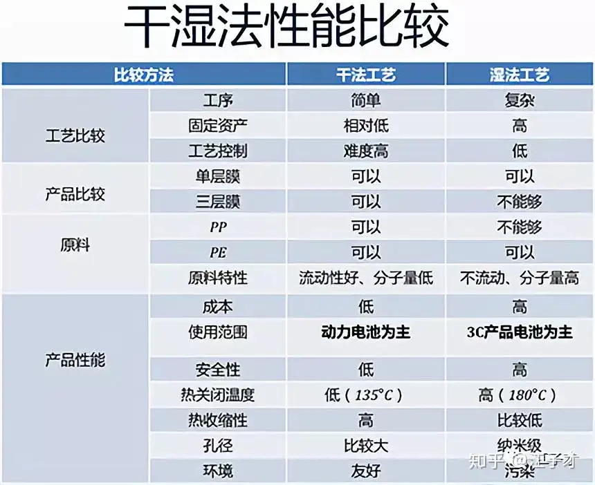 通过对比湿法和干法,我们会得到,干法工艺孔径较小,孔径均匀性差、拉伸强度均匀性差、横向拉伸强度低、横向收缩率低、刺穿强度低。而湿法隔膜孔径小,孔径均匀性好、拉伸强度均匀性好、横向拉伸强度高、横向收缩率较高、刺穿强度高。