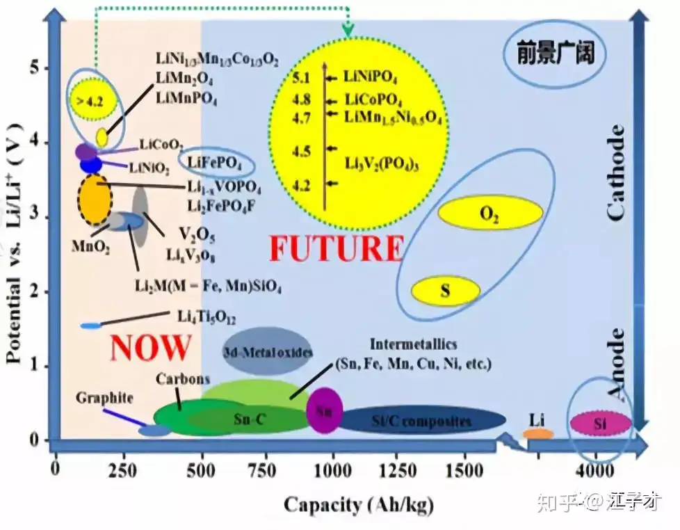 金属锂,是密度最小的金属之一了,标准电极电位-3.04V,理论比容量3860mAh/g,从这个数据看,仅次于硅的4200mAh/g了。应用领域锂硫电池(2600wh/kg)、锂空气电池(11680wh/kg)等。