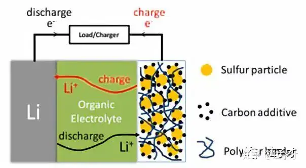 锂硫电池,结构示意图和方程式如下,硫也是自然界存在非常广泛的元素,锂硫电池较高的能量密度(2600wh/kg)有可能作为下一代锂电池研发的重心。