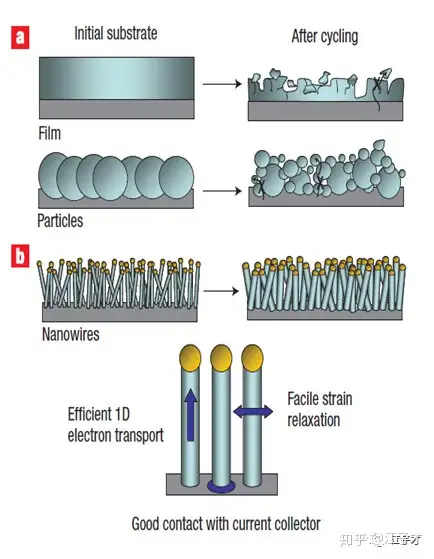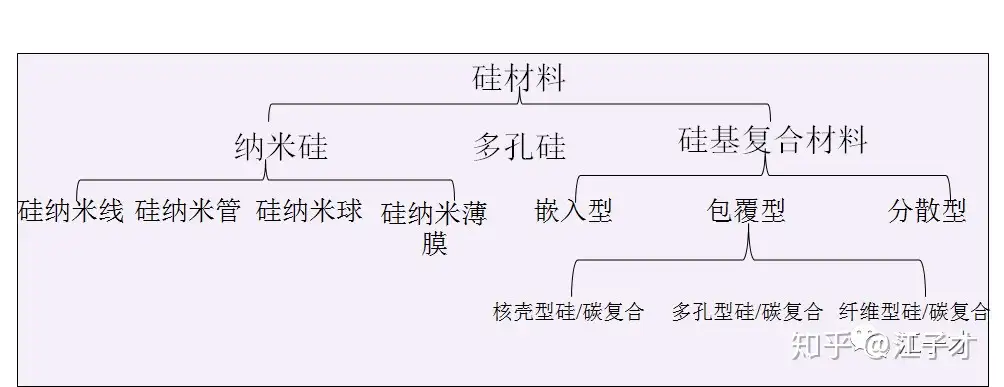 纳米硅,通过制备成纳米线,使得所有的硅得到利用,并预留膨胀空间,可有效改善循环性能。但是该方法成本较高,工艺制程复杂,制备难度较大。