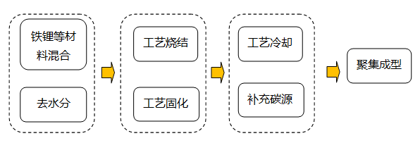 (1) 高温固相法——高温固相反应法是制备磷酸铁锂是目前发展最为成熟也是使用最广泛的方法。将铁源、锂源、磷源按化学计量比均匀混合干燥后,在惰性气氛下,首先在较低温度下烧结,使原材料初步分解,然后再在高温下烧结得到橄榄石型磷酸铁锂(工艺不同、差距较大)。