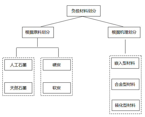 锂离子电池负极作为电子跃迁的受体、从种类来分目前主要使用天然石墨材料及人造石墨材料、焦炭、硬碳等,未来待量产开发的有诸如硅碳复合材料、石墨烯材料等。从机理来分主要有嵌入型负极材料、合金化型负极材料和转化型负极材料。 锂电池负极材料关乎安全性风险,在锂离子电池负极材料中天然石墨和人造石墨占据着90%以上的负极材料市场份额; 中间相碳微球(MCMB)、无定形碳、硅或锡类仅占据小部分市场份额.