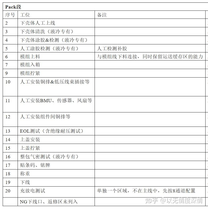 目前,产线的总体工艺路线分为模组段和PACK段,模组段主要负责将电芯组装成模组,而PACK段主要负责将若干个成型的模组组装在壳体中形成PACK。