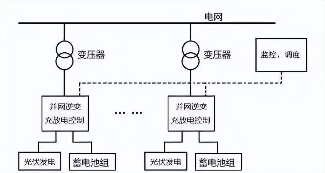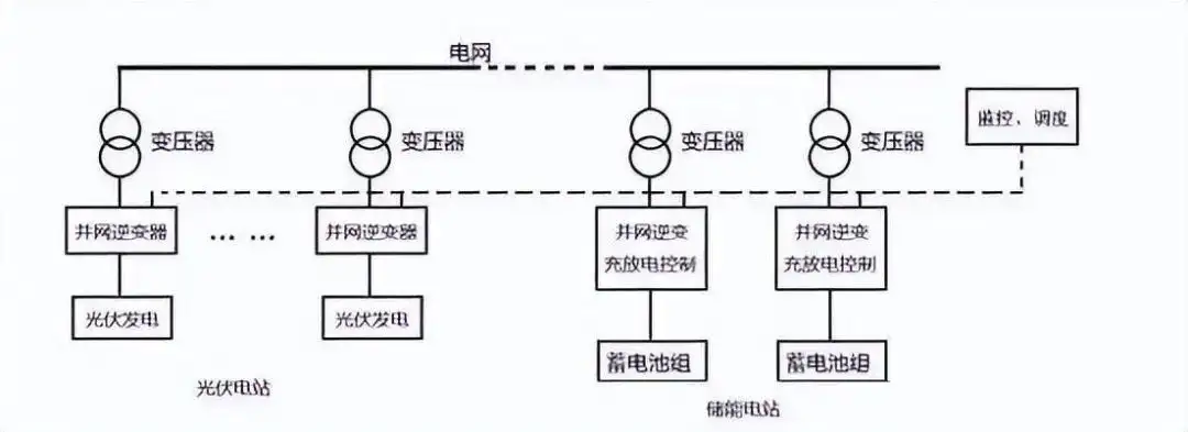 配置在电源交流侧的储能系统,可以称为单元型交流侧储能模式。主要采用独立的充放电控制器和逆变器来给蓄电池充电或逆变。这种方案实际上是在现有光伏发电系统外添加一个储能装置,可以升级安装在任何一种光伏电站、风力发电站或其他发电站上,形成站内储能系统。同时可以根据电网需求建设成完全独立运行的储能电站。
