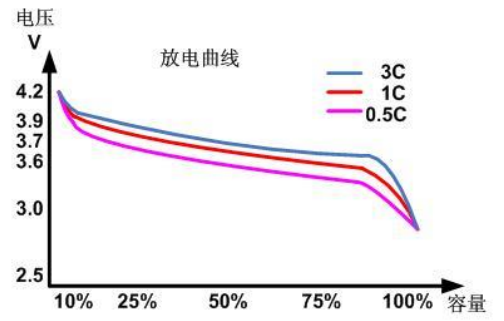 锂电池的充放电曲线指的是电池的容量和开路电压的关系曲线,根据电池的放电曲线,可以粗略的估计电池的电量,如下图所示: