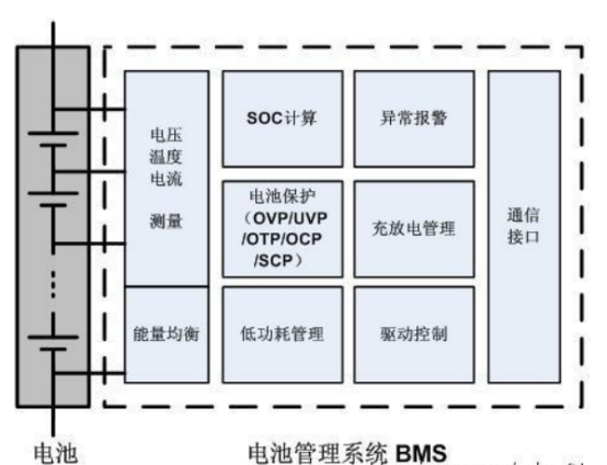 电池管理系统(BMS : Battery Management System)主要应用在动力电池,像电动汽车、电动自行车、储能等大型系统。