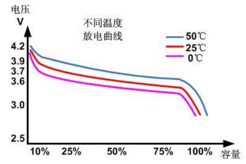 锂电池的充放电曲线不仅与充电放电电流的大小有关还与温度有关,如下图所示: