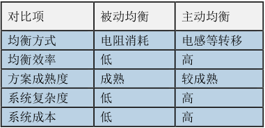 业内一般有被动均衡和主动均衡两类方式,其中被动均衡主要是把电量多的电量通过电阻消耗达到均衡,主动均衡主要是把电量多的电池的电量通过电容、电感或变压器转移到电量少的电池达到均衡。被动和主动均衡对比见下表。