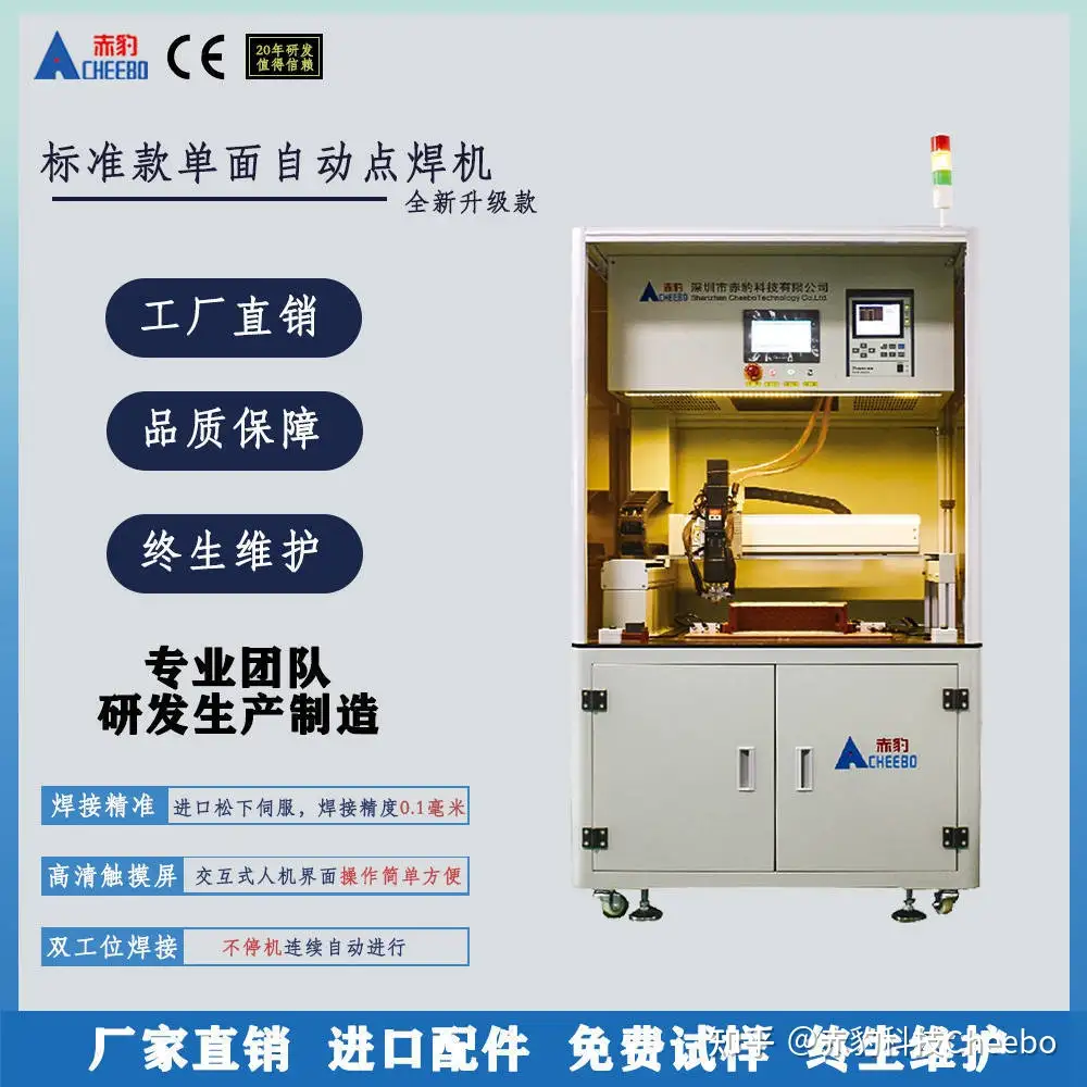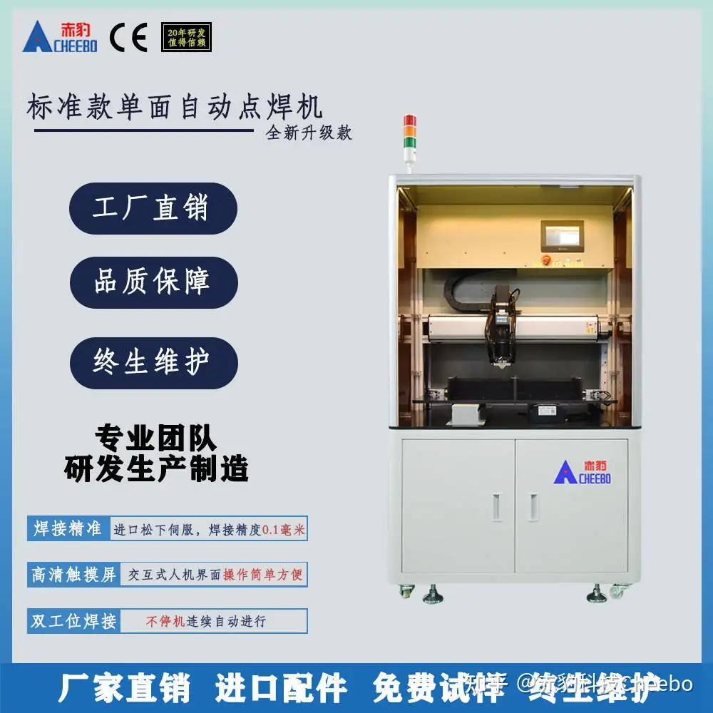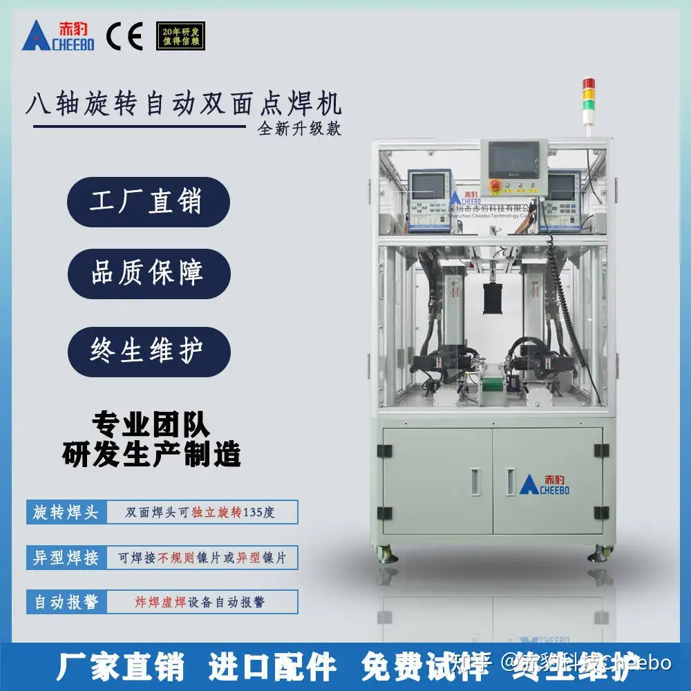 双面全自动点焊机:电芯/支架/电池镍片装入治具——放置治具到感应位置——设备自动点焊完成送出到取料位置(选择出料方式:前进前出、前进后出)——从治具中取出电池组——进行下一个生产循环