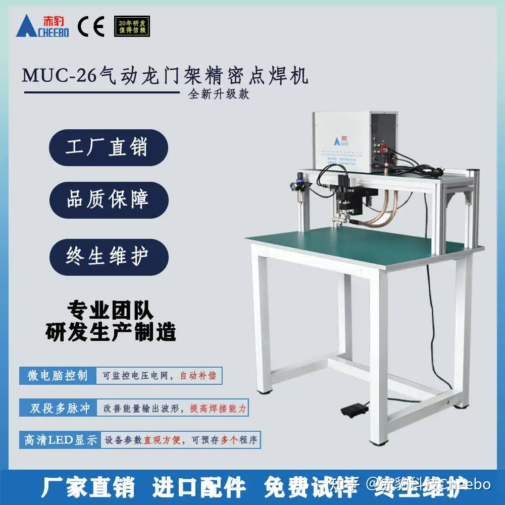 脚踩式龙门架点焊机:电源开机——检测WELED开关是否打开——在桌面放置需要焊接的产品——踩脚踏板——焊头下压——点焊完成——焊头回位