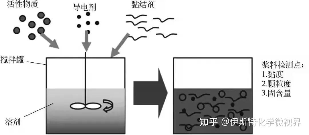 制浆是将活性物质粉末、黏结剂、导电剂等按一定比例混合均匀,并加入溶剂制成稳定悬浮液的过程。