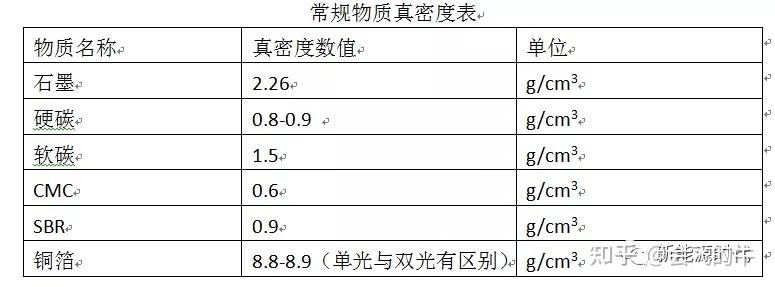 1、负极制片与正极同样操作,但工艺设计不同,车间环境温度:≤23℃,湿度:≤25%。常见负极物质的真密度