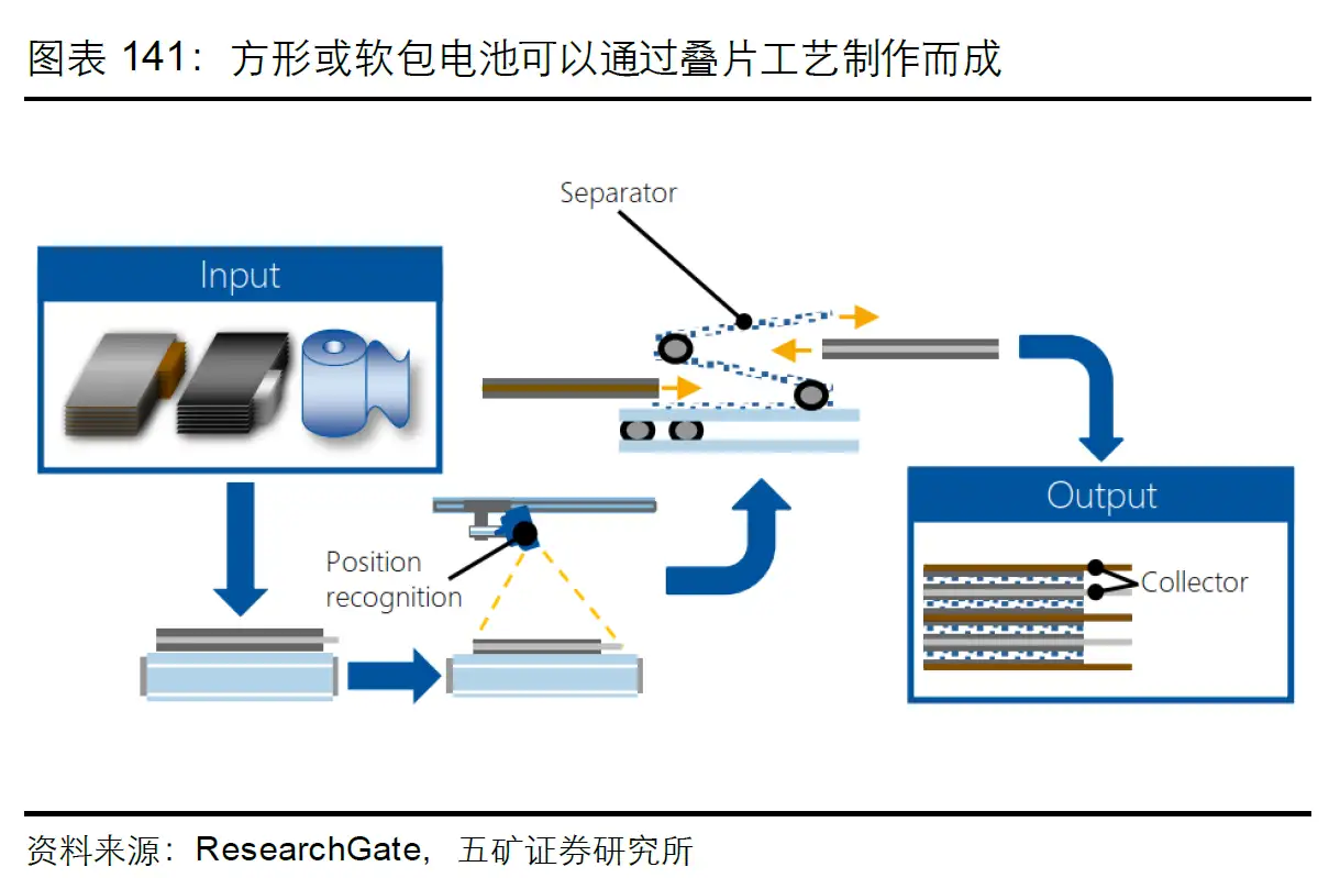 软包电池,薄薄的一片,只能用叠片工艺。 方形电池也可以用叠片,就是性能更强一些。