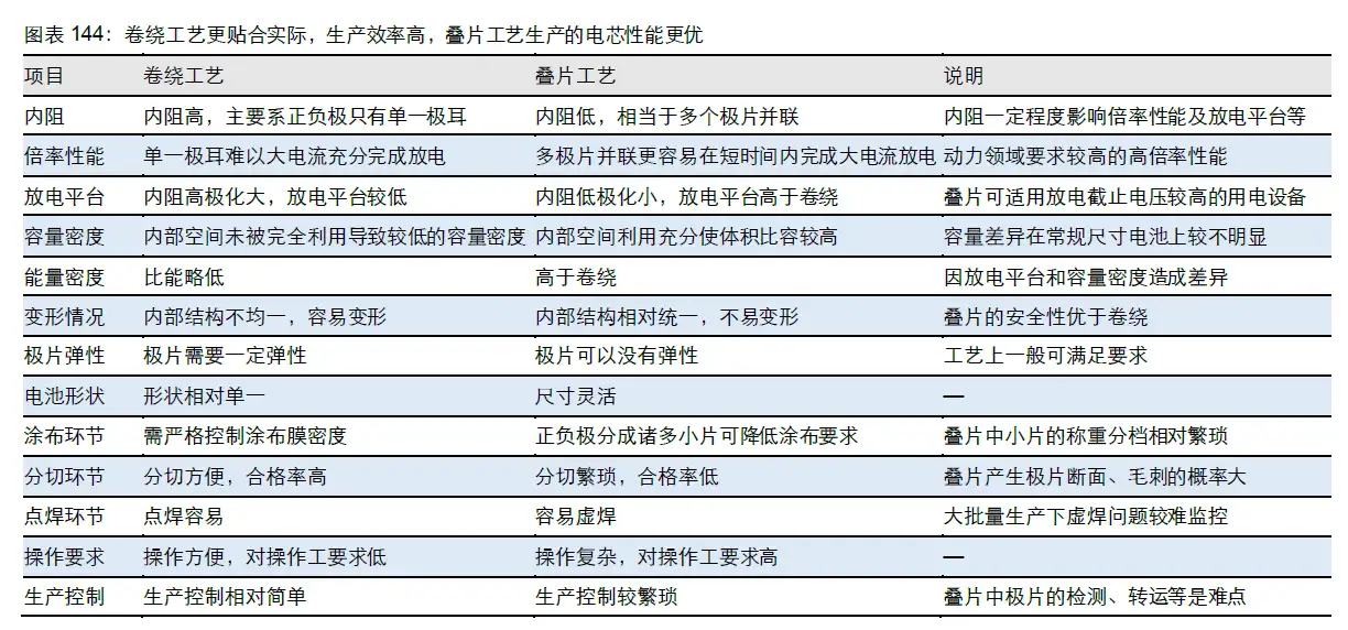 卷绕与叠片工艺不一样,对生产设备的需求也不一样。总体来说,卷绕工艺是现在,好处是便宜成熟好用;叠片工艺在未来,好处是性能更好,但可能会贵。