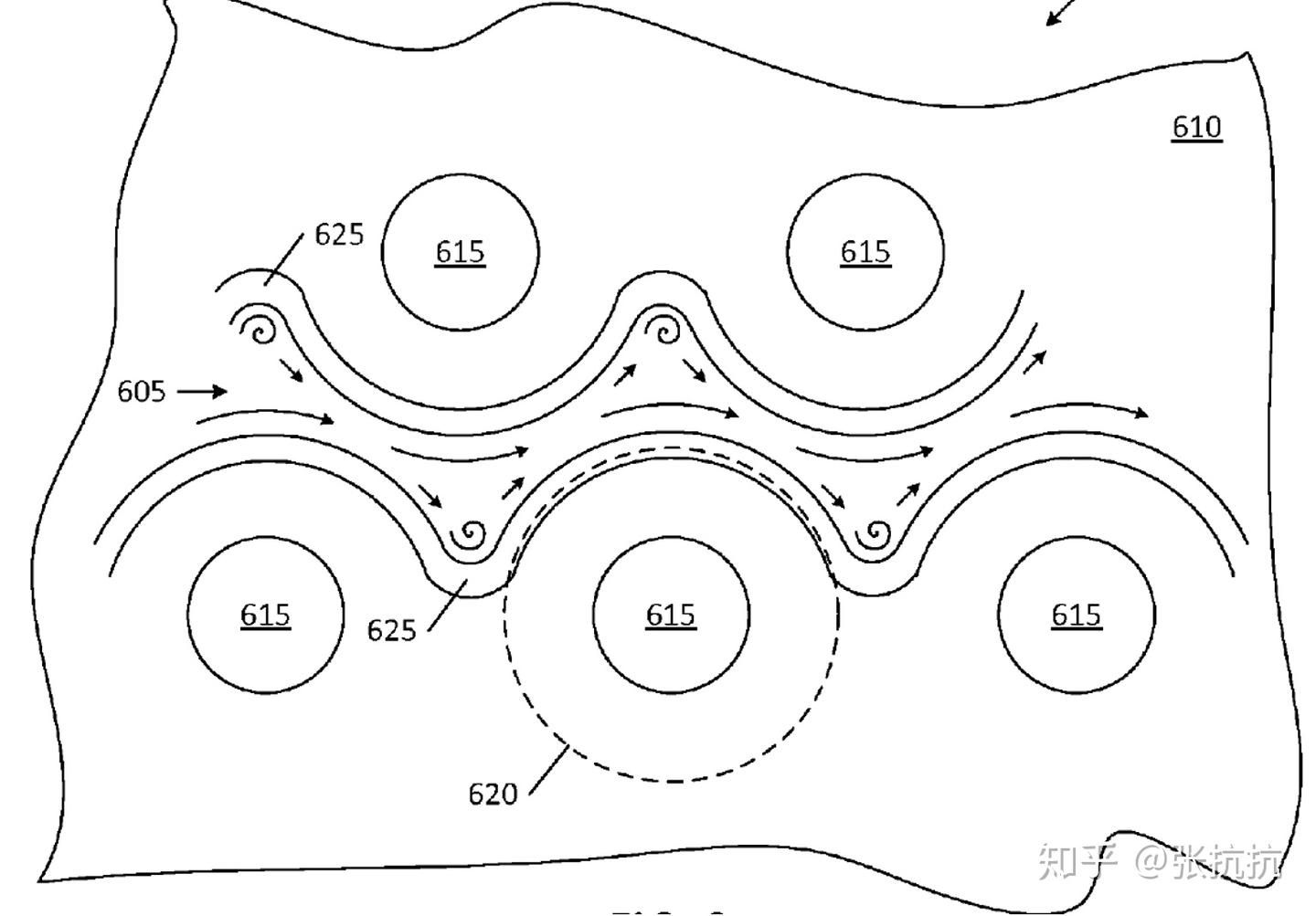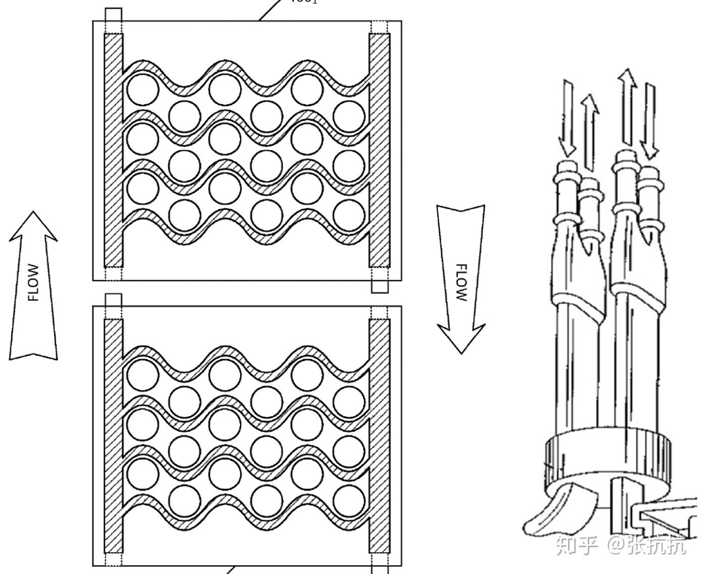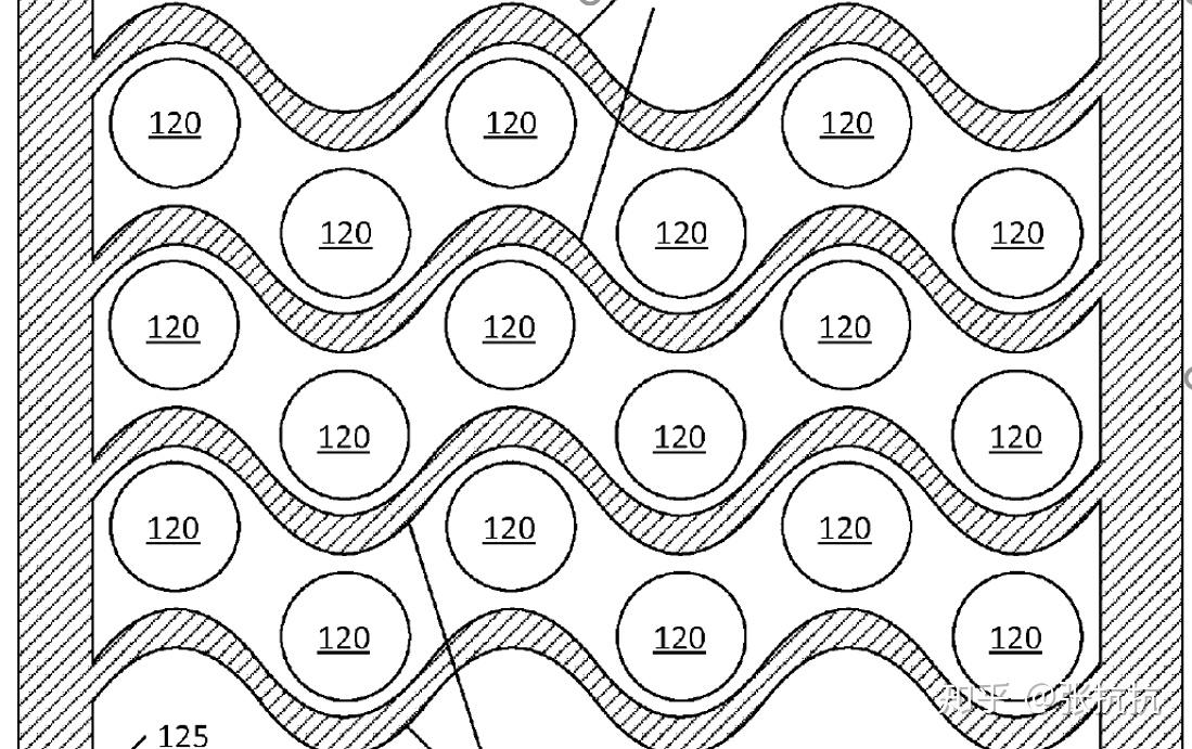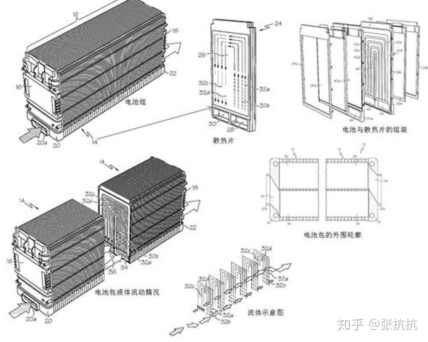 特斯拉使用的圆柱形电池接触面比较小,散热是个难点;18650单体电池容量小,所以电池组内的单体电池数量尤其多,更是增加了电池温度一致性的难度。因此,特斯拉费了不少心思进行热管理设计,从公开的专利中可以看出一些设计思路。