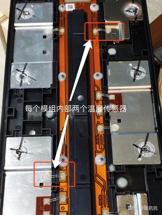 从实际的拆解图来看,是每两层之间有一个大的散热带,可能主要是为了节约空间和重量。而实际散热带的布置和走向,也并非像专利示意图中这么规整,而是呈现环状。