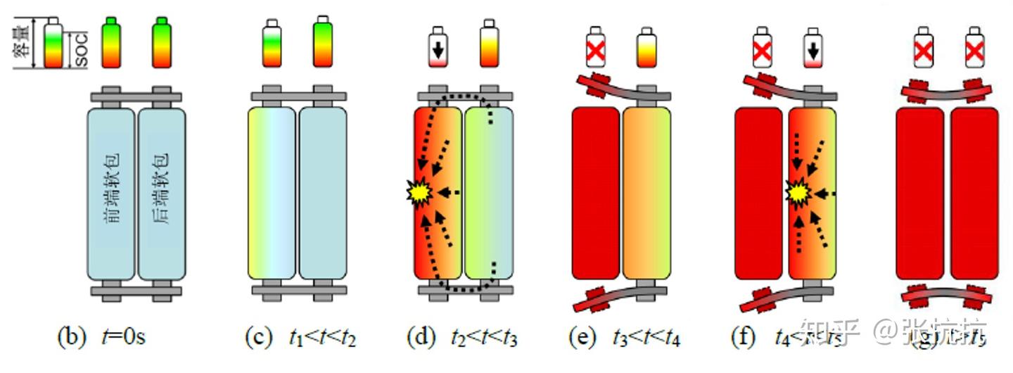 电池差异扩大是一个渐变过程,也许只是容量偏小5%、内阻偏大10%的情况;但最弱的环节引发电池包的热失控却是一个突发过程,为什么会这样呢?原因就在于链式反应。