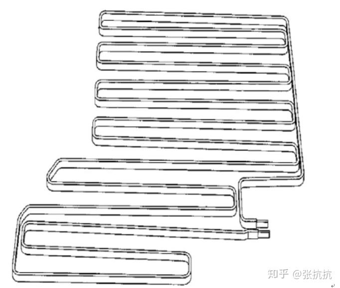 其一,特斯拉设计了蛇形散热片。 这样每个散热片的曲度和圆柱形吻合,大概可以做到大半个圆的接触面积,促进电芯和外界的导热,降低热阻;每一条金属片都会和左右两边的主散热通道连接。