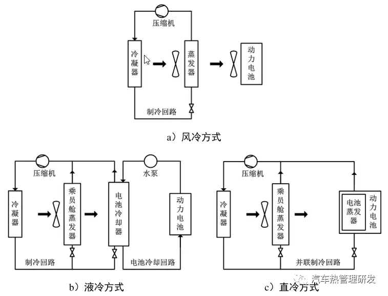 目前动力电池系统的热管理主要可分为四类,自然冷却、风冷、液冷、直冷。其中自然冷却是被动式的热管理方式,而风冷、液冷、直冷是主动式的,这三者的主要区别在于换热介质的不同。本文主要讨论直冷方案与业界使用最多的液冷方式的优缺点。