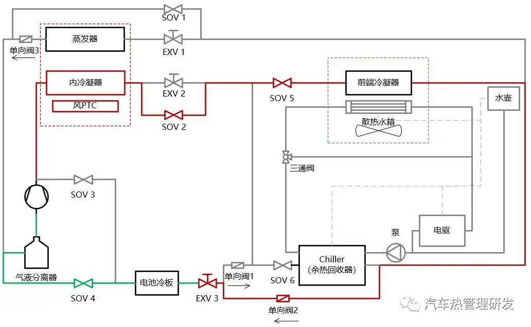 - EXV2和SOV2可以合并成一个大通径的电子膨胀阀,不需要节流的时候就把大通径的电子膨胀阀全开,比如马瑞利就有这种大口径的电子膨胀阀。