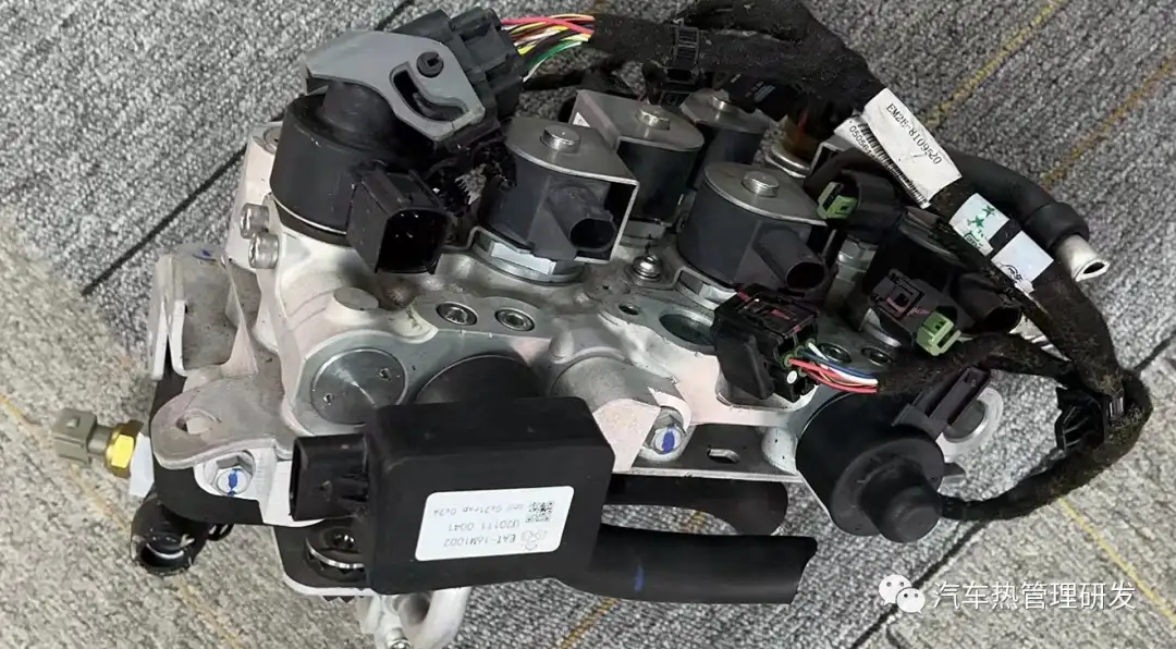可以看到阀岛反过来之后还有一个类似与我们在其他电动车上看到的电池冷却器一样的东西,但在海豚这个车上电池是直冷直热的,所以其实这个冷却器是给八合一电驱用的,这也是挺有意思的一个点。
