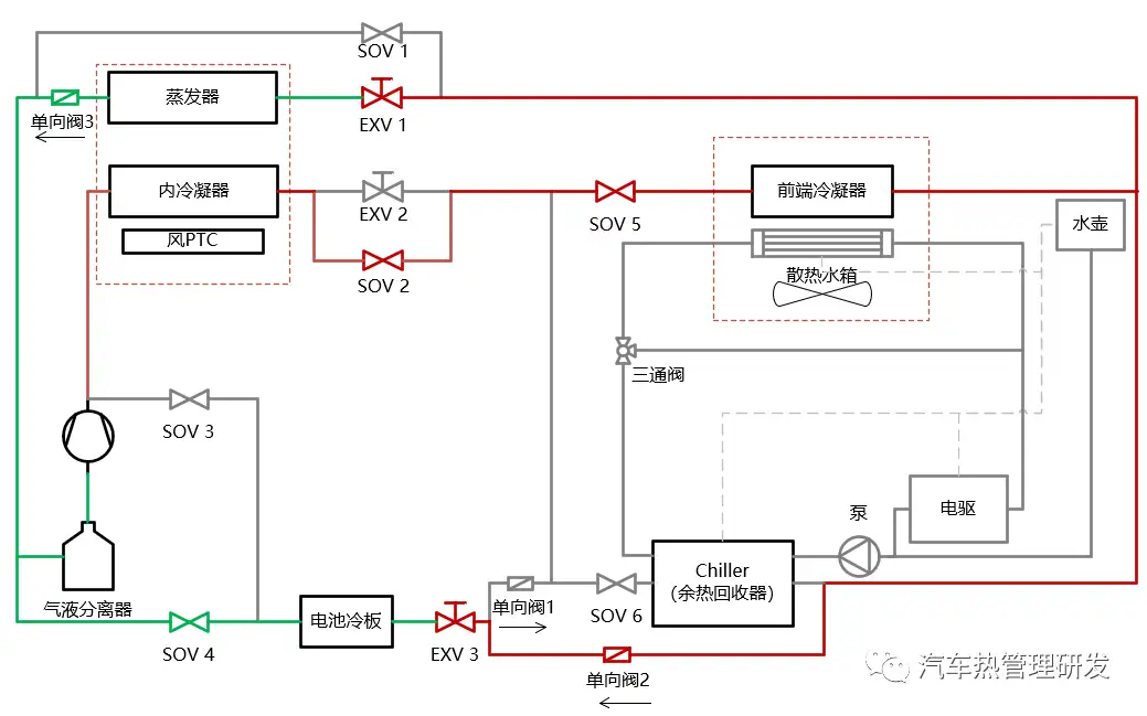 基于以上的热管理系统架构,以下分解几个典型的热泵模式: